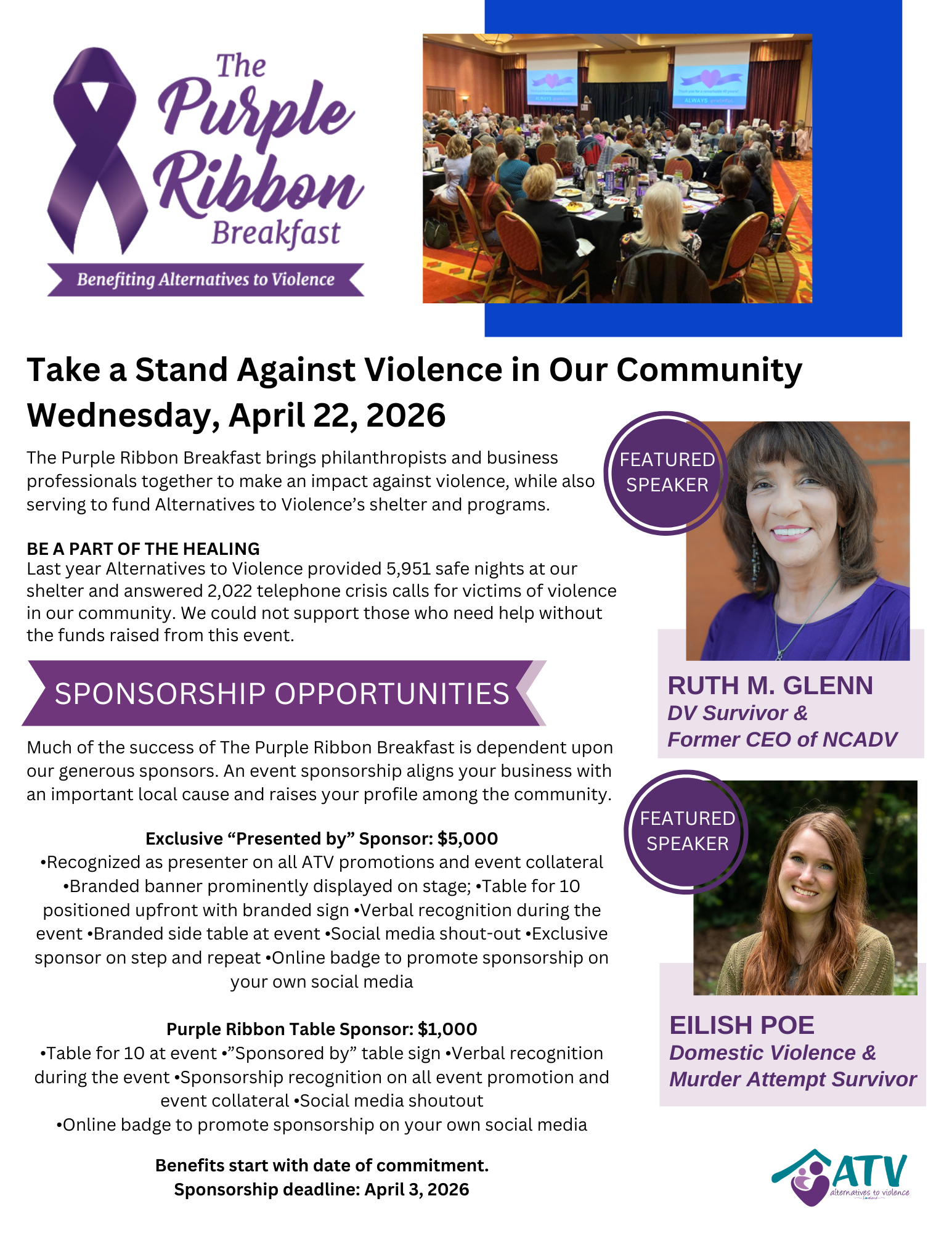 If you would like to support The Purple Ribbon Breakfast by being a Table Host, please email rosemarie.massaro@alternativestoviolence.org.